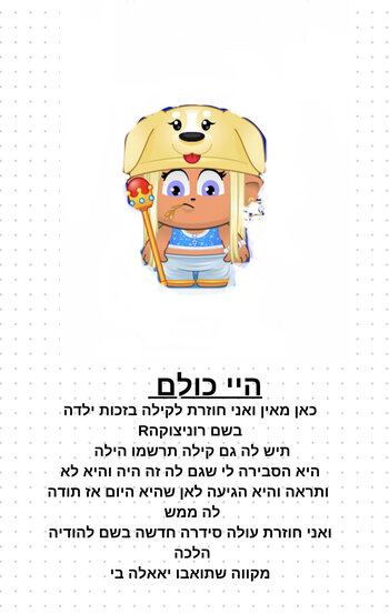 הי כולם כאן מאין ואני חוזרת אני יודעת מאתמול להיום כן בזכות רוניצוקהR