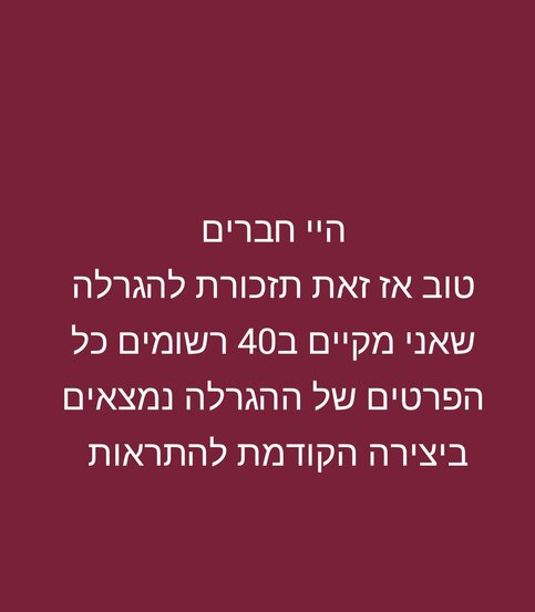 חברה אנחנו עוד חמישה רשומים מגיעים יאללה לכו לפוסט הקודם ותרשמו!!