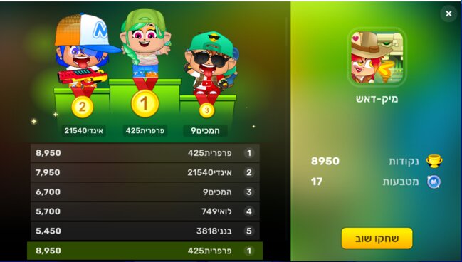 אבל זה המיקדאש במשחקייה (זה לא שמשחקים עים עוד מיקמקים) ואני כבר מקום שני חחחח |