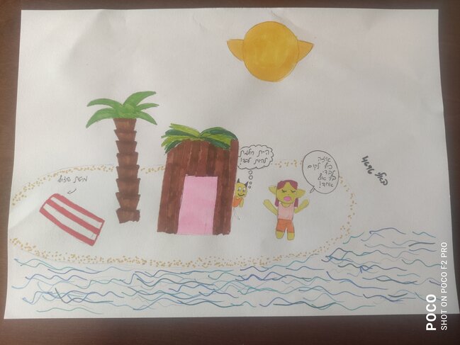 סלומ חברים סלי!! אז היום ציירתי תמונה למיקשימה!! (מקווה שהתמונה נכונה) אז כמו שאתם רואים, בתמונה יש אותי נהנית באי הבודד שלי עם הבית שבניתי לעצמי ואפילו יש בצד מיטת שיזוף! וכמובן כמו בכל אי מוקפת במים הנעימים ונהנית מהשמשמיק אבל מה שאני לא יודעת זה שאחותי הקטנה מסתתרת לי! ואני לא באמת לבד! היא מתחבאת ליד הבית שבניתי! אני לא שמה לב ויש לה מזל חחחח