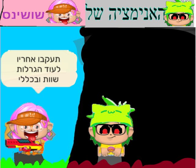 הי שושינס2013 עם את רואה את זה אני מקווה שאהבת את התמונה זה התמונה הראשונה של האנימציה שלי אבל החלפתי כמה דברים