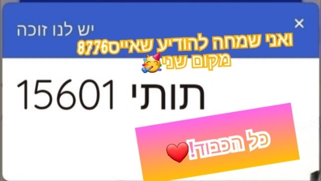 מזל טוב לזוכיםםם:)))✨️✨️❤️ |