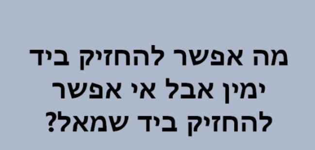 את יד שמאל של עצמך, כי את יד שמאל של אחרים אני יכולה להחזיק ביד ימין וביד שמאל. |