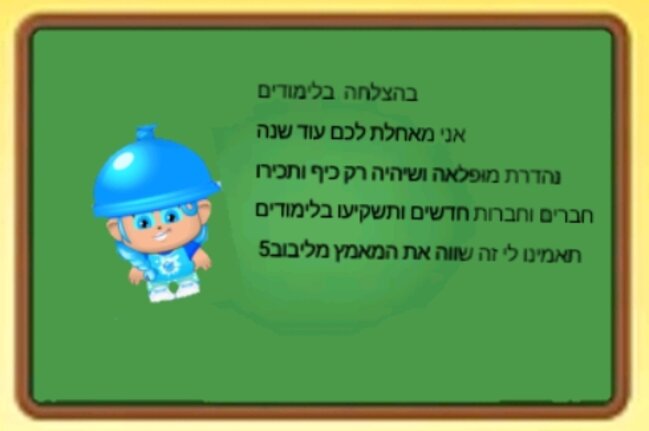שלום לכולם אני מאחלת לכם בהצלחה בלימודים שיהיה לכם כיף שתכירו חברים וחברות חדשים ותשקיעו בלימודים בסוף זה יהיה שווה את המאמץ וגם אם יש קשיים בדרך תתאמצו ותצליחו תלמדו דברים חדשים ותגדלו שיהיה לכולכם כיף בהצלחה בלימודים מליבוב5