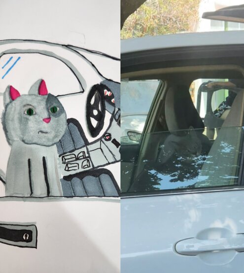 היי מיקמקים הנה יצירה שציירתי בסגנון החוויות שעברנו בחופש מה שאשתף אתכם כאן קרה באמת השקעתי מאוד בציור וגם על שהצלחתי לצלם את החתולה השובבה שנכנסה לרכב אשמח אם תשימו לייק ותגובה❤️