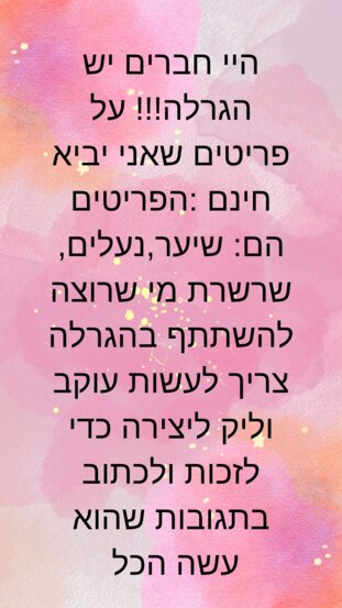 עשיתי הכל(: אשמח להשתתף! מאחלת בהצלחה לשאר המשתתפים❤ |