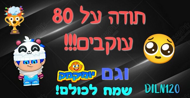 תןדה רבה רבה כל כך מהר הגענו למספר 80!!! תודה לכל מי שתמך וביחד אני מאמין שנגיע ל90 ואז 100!!!