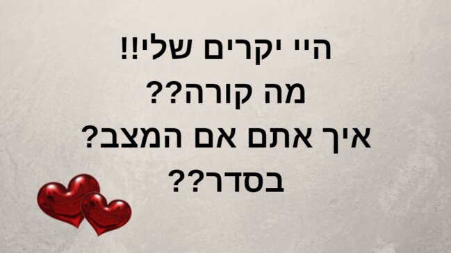 היי יקרים שליי!! מה קורה?? איך אתם אם המצב?? בסדר?? תספרו לי בתגובות איך אתם מרגישים בזמן הזה... אה ואגב לא שחכתי מההגרלה על תדאגו בעקרון שלחתי מלא פעמים את היצירה של ההגרלה וזה פשוט לא נשלחאז לא לדאוג בקרוב יהיה הגרלה בקיצור... תשתפו מה איתכם?? אז ביי בנתיים... אוהבת #לא להעתיק את היצירה#