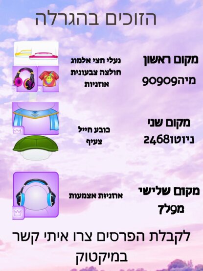 מזל טוב לזוכים!! נ.ב. ממה שידוע לי האוזניות של מי שזכה במקום ראשון לא להחלפה |