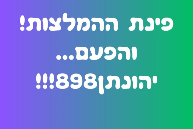 פינת ההמלצות! והפעם יהונתן898 (חדש)!!!!
