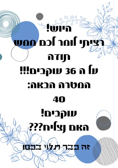 אני ממש ממש מודה לכם על 36 העוקבים שלי!!! המטרה הבאה שלנו היא 40 עוקבים! אתם לא חייבים לתת עוקב או לשים לייק אבל אם רק תוכלו ללחוץ על הכפתור למעלה זה ממש ישמח אותי ויעזור לי מאוד! תודה לכל העוקבים שלי ולכל המיקמקים שרצים עכשיו לעשות עוקב! ואם אתם לא רוצים לקחת חלק, אתם תמיד מוזמנים להצטרף למשפחה הגדולה בפעם הבאה. ביי ביי