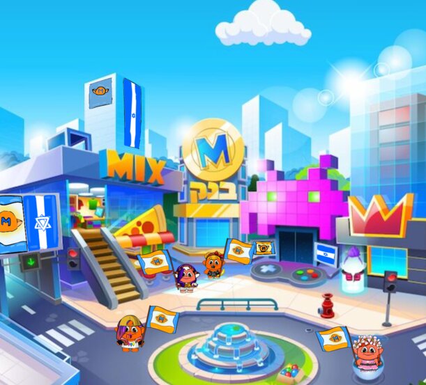 אז בציור אפשר לראות את דגל מיקמק לצד דגל ישראל וכמה בנות שמחזיקות בדגל ישראל. חשוב לציין הבנות הן מיקמקיות שפרסמו את התמונה שלהם לעיצובים אז תודה לכן♡
