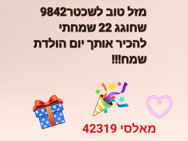 לשכטר9842 שחוגג 22 מזל טוב ושתמשיך להיות איתנו כאן תמיד