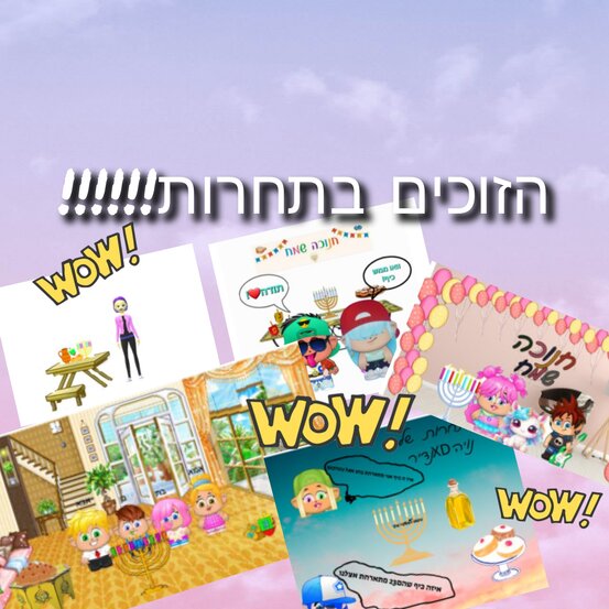 היוש נדירים שלי!!! מה קורה? טוב אז סוף סוף הצלחתי להעלות את היצירה!!! אז... בלי יותר מידי חפירות בואו נכריז על הזוכים!!!!!! מקום ראשון!!!- *מיקמק22086*!! - עם יצירה שמשקפת באופן מדוייק את אווירת החג! מקום שני!!!- * מיקהמלך75* - על הרעיון המקורי לצרף מנהל לערב החג!!! מקום שלישי!!!- *אבטיח11456* - עם יצירה ממש מגניבה וחגיגית!! מקום רביעי!!!- *שהם23* - עם יצירה שרואים שהיה פה תיכנון מבריקוגם ביצוע מ-צ-ו-י-ן!!! מקום חמישי!!!- *רמבו174* - עם יצירה מהממת שמושקעת עד לפרטים הקטנים!! המון מזל טוב לכל הזוכים!! ואני גם רוצה להודיע כמה הודעות יצירה הבאה! חלק טובות...חלק לא ממש... טוב אז שהיה לכווולם יום נדיר! לילה נדיר! ותמיד נדע שאנחנו העם הכי חזק! ואף פעם לא נרים ידיים! יש לנו חיילים מקסימים!!! הגיבורים באמת!!! מי שיכול - מאוד יעזור לקרוא תהילים ולהתפלל להצלחתם!!! הלוואי נדע בשורות טובות!! עם ישראל חי!!! אוהבתת!!!
