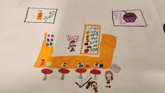 ביצירה רואים שני ילדות אחת מבקשת אוכל והשניה מתפעלת מהשרות הטוב. והמלצרית שואלת מה הם רוצות לאכול