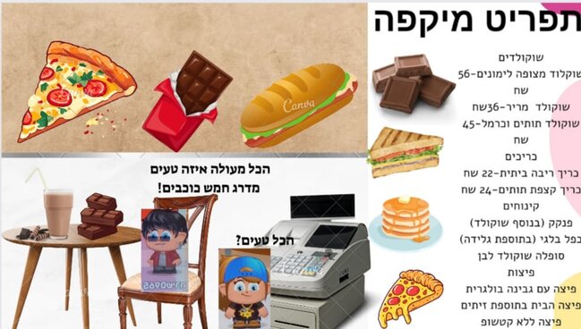 בלוג הפרס זאת הפעם הראשונה שלי שאני מעלה לבלוג הפרס בעצם מה שאתם רואים זה מסעדה ותפריט אבל לא סתם אם תסתקלו על התפריט זה תפריט במסעדה שכל ילד רוצה יאמי טעים אני הייתי שמחה ללכת למסעדה כזאת השקעתי מלא! יום שלם עיצבתי את זה אני מקווה שעדיין לא מאוחר להגיש מי יודע אולי אזכה בהצלחה לכולם שירוש