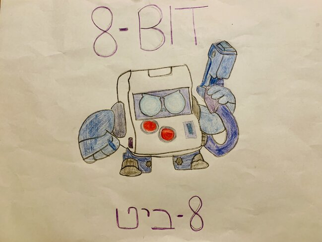היי חברים!!!!!!!! מה קורה???? היום עשיתי את שמונה ביט(8ביט)(בראול סטארס) אזזזז בלי יותר מדי חפירות בואו ואסביר מה רואים… רק אומרת מי שלא יודע או מבין בבראול סטארס לא ניראה לי שזה יעניין אותו… טוב אזזז אין לי כל כך איך להסביר בקיצור נורא השקעת ציירתי ביד(: ותבעתי באמת הכל וזה לא דף צביעה אפשר לראות שהעיגולים לא יצאו לי הכי סמטרים(: כתבתי למעלה באנגלית שמונה ביט ולמטה בעברית שמונה ביט(: זהו להיות מקווה לזכות