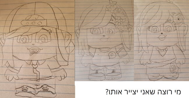 אוקיי מעלות123 קיבלת ציור יש לי שבוע עמוס מאוד אז אני יצייר אותך מתישהו אין לי מושג מתי אבל רק צריך להיפגש במיקמק שאני אוכל לראות איך אתה נראה |