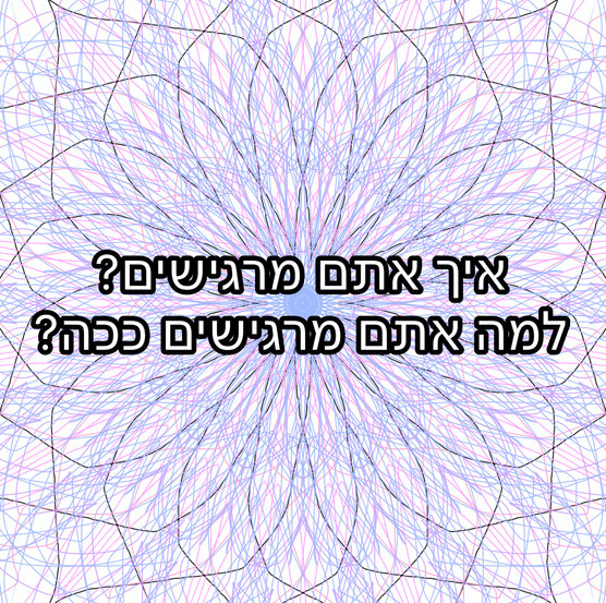 תודה רבה לכם שאתם זורמים איתי ומשתפים אני מרגישה חצי ערנית וחצי כאילו אני עומדת למות מעייפות וכזה גם שמחה אבל משועממת אז בקיצור אני מבולבלת |