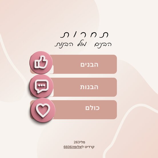 הבנים - לייקים הבנות - תגובות כולם - סאב ונעשה את זה יותר מענין כול בן/בת שתכתוב בתגובות נרשמתי [ובאמת נרשם] הקבוצה שלו תקבל עוד נקודות [הבנים לא לחשוש התגובה הזאות לא תחשב לבנות] בהצלחהה התחרות תסתיים ב31 ליולי או מתי שיתחיל להיות יותר מענין אוהבת מלי263 [קרדיט לאלופה6606