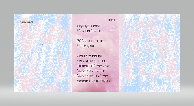 וואו תודה לא ציפיתי להרבה שאלות ומבטיחה לענות אליהם בקרוב |