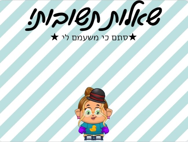 מיקמק 1 או 2? מה השיר האהוב עלייך? סרט או סדרה? מה הסרט האהוב עלייך? מה הסדרה האהובה עלייך? |