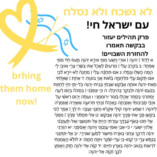 להחזרת החטופים ושהחילים יחזרו בשלום אמןן! פרק תהילים לחזרת החטופים: פרק כז