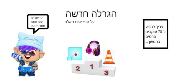 פחות אהבתי את הקונספט שחייבים להשיג עוקבים... הקהילה בנויה ממאמץ לא מתחרות. אני לא אשתתף כי גם יש לי את הפריטים אבל בהצלחה למי שכן |