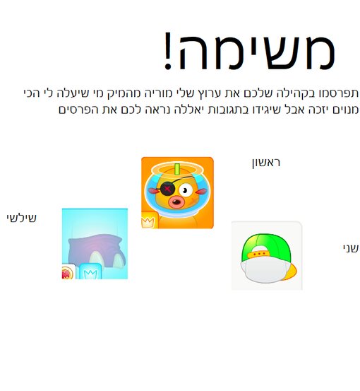 מגניבב בהצלחה למי שמשתתף ;) אממ ישלי הכל אז לא אוכל להשתתף ^^ |
