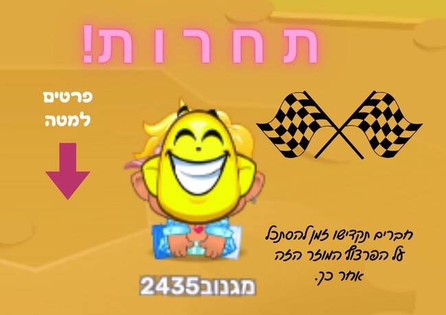 חברים מי ששואל מה התחרות שיקרא בבקשה את התיאור ואם לא הבנתם מוזמנים לשאול במיקטוק |