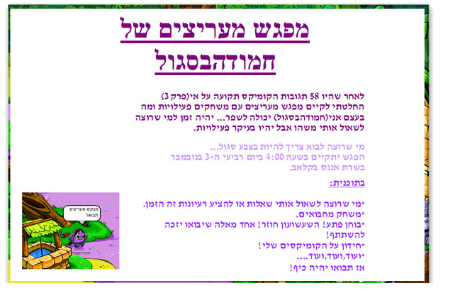 היה ממש כיף תודה חמודהבסגול אני משתתף בפרק החמישי תראו ותפתעו מקסים והכול תודה בעיקר |