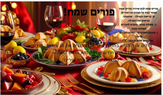 קראו את ההסבר שלמעלה (מי שלא רואה אז הנה ההסבר:) פורים שמח לכם שיהיה פורים שמח אספר קצת על מצוות חג הפורים: א. קריאת המגילה - שומעים/ קוראים את המגילה. ב. משלוח מנות- נותנים לחברים משלוחי מנות. ג. מתנות לאביונים - נותנים לעניים צדקה. אז פורים שמח לכולם!