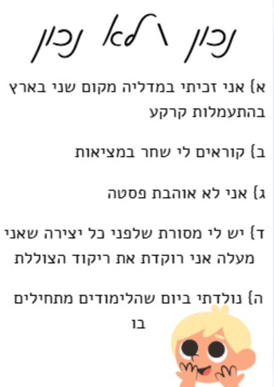 אתם כותבים לי בתגובות כל סעיף מה אתם חושבים אם זה נכון או לא