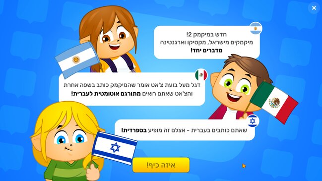 היי חברים קראתם איזה כיף! נכון זה כיף אנחנו יכולים לדבר עם מקסיקו וארגנטינה יואוווו איזה כיף נדבר אתם איך אתם יכולים לדעת מאיזה ארץ? לעד מה שכתוב מראה את הסמל ירוק ואדום מקסיקו שמש ארגנטינה! כיף לדבר זה מתרגם אותומטי!