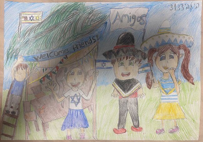 אז ממש התחברתי לנושא הפעם של המיקשימה החודשית לארח מיקמקים מארצות שונות. ובציור אתם רואים שאני מארחת שני מיקמקים מארגנטינה ומקסיקו! והם נורא מתרגשים לבוא לסוכה שלנו בישראללל ויותר מזה אני התרגשתי לארח אותם!!! כי זה באמת מרגש לארח מיקמקים מארצות ממש רחוקות. אז כמובן שאמרתי להם ברוכים הבאים באנגלית ובספרדית חברים כי באמת באלי שהם ירגישו שייכים אצלנו אז היי חברים או כמו שאומרים בשפה שלהם הולה אמיגוס!! ☺ וכמובן יש מלא קישוטים של הדגלים שלנו ויש דגל מעל הסוכה שאני עיצבתי אותו במיוחד ששילבתי את שלושת הדגלים שלנו ישראל, מקסיקו, וארגנטינה וחיברתי אותם ביחד כדגל אחד! ממש אהבתי את התוצאה :) ומקווה שגם אתם תאהבו, כי ממש השקעתי בזה :)