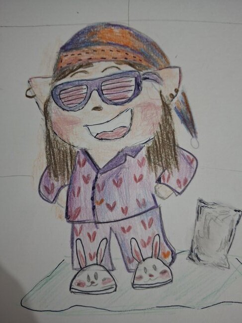 אמאלהההה איזה ציור מטורףףף בואו נראה מה אני מזהה אני מזהה נעלי ארנב לבן ואת הכרית הלבנה בצד מתיבה בבומבו זהו זה הכל חחחח קיצר מטורףףף יש לך כישרון וממש אהבתי את הפיג'מה יצא 100מם!!! וגם השילובים של הצבעים בכובע יצאו מושלם!!!!! חובה זכייהההה |