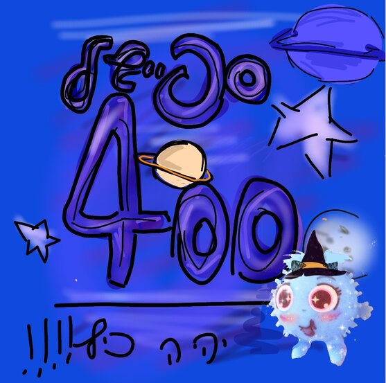 יאאאא מזל טוב על 400 עוקביםםםם מגיעה לךך וחח תודה על השיא החדש של העוקבים שאת רוצה להגיעה אליו חח ויאאאא העלת תמונה של חדגון!!!!!!!! (היצור הכחול שאתם רואים זה חדגון אולי דיגי תגיד לכם למה קראנו לו ככה) |