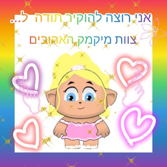 שלום לכולם היום רציתי לאומר תודה רבה גדולה לצוות מיקמק האהובים שהם עושים לנו משימות כפיות, שהם נותנים לנו פרסים שווים למשימות תודה רבה לכולם ועל תישקחו לעקוב אחרי אוהבת אתכם בייי