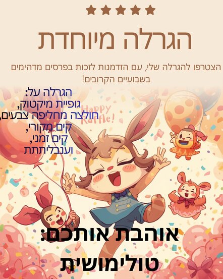 ההגרלה מתחילה!!!! היכונו לספירה לאחור 333 שעות לשבועיים מוכניםםםם?????? |