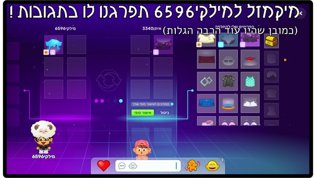 שלום לכולם אז היום אחרי הרבה זמן של סבלנות אני מכריז על הזוכה מילקי6596 כולם תפרגנו לו בתגובות אז מיקמזל למילקי6596 שעשה הכול ומגיע לו באמת חבר טוב של כולם דואג לאחרים וזהו כמבון שהיו עוד הרבה הגרלות שוות אז בייי