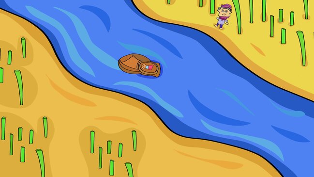 אז ציירתי את תיבת משה, בנהר הנילוס, ששטה לה, ואת המיקמק שלי שמשגיח עליה על מנת שלא יקרה לה כלום.