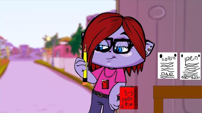 היא שמה מישקפיים שכבר היתנפצו לה וחולצה של חשבון קיצר כולה עשוייה מחשבן. |