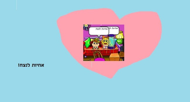 יפה יפהההה אהבתי חח ברור שאחיות לנצח אחיות נישארות אחיות אולי חברות חח... טוב לא נורא...:)3>3>3> |