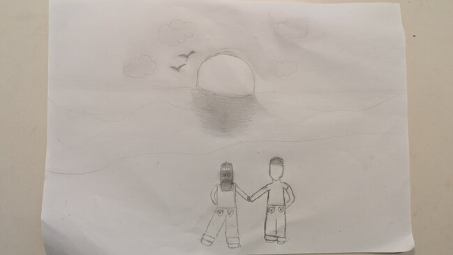 אני צירתי בן ובת בחוף ים בשקיעה