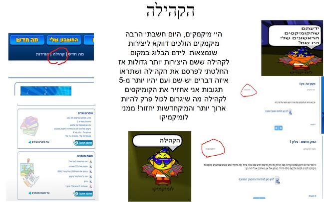 היי מיקמקים, אני רואה שתמיד התמונות ליד מקבלות הכי הרבה תגובות ורק התמונות שבקהילה מקבלות 2 או 1 אז החלטתי להראות קצת על הקהילה בבקשה תעלו את זה צוות המיקמק ממני לומיקמיקו שפעם העלה לשם קומיקסים