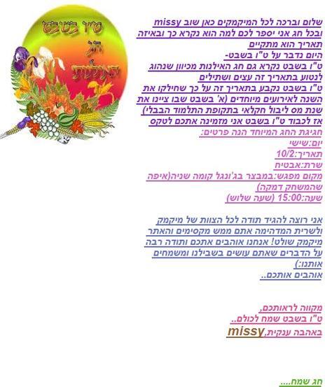 וואו זה נשמע מרתק אני מחכה רשמתי הכל על דף מכדי שאני לא ישכח ואבטיח זה בדיוק השרת שאני צריכה אני מחכה לראות אותך missy ביי נ.ב. אני יקווה שאת לא תשכחי ושעוד ילדים יבואו כך שנוכל לשמוח :) זהו זה הכל להיום |