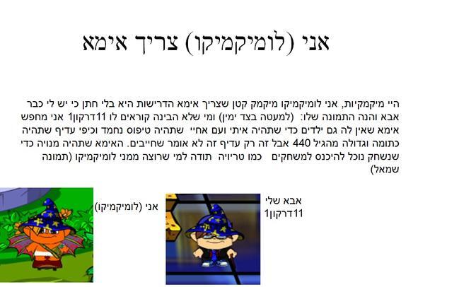 אני מכירה את (לומיקמיקו) הוא ילד חמוד חחח מה אני רוצה להוסיף לו תגובה ולאבא שלו מזל טוב אל ילדו החמוד אני מקווה שתימצאו אימא מימני השם שלי (המיקמק). |