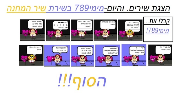 היום נשיר יחדיו את שיר המחנה את ש י ר ה מ ח נ ה שיר המחנה ואפשר לשיר יותר מהר זה דווקה מהנה אז תשירו את שיר המחנה ש י ר ה מ ח נ ה שיר המחנה ש י ר ה מ ח נ ה ואפשר לשיר יותר מהר זה דוקה מהנה אז תשירו את שיר המחנה ש י ר ה מ ח נ ה שיר המחנה פטריק!ש י ר ה מ ח נ ה.....אין לי כוח לשיר את הכל....[: למרות שהגעתי לסוף |