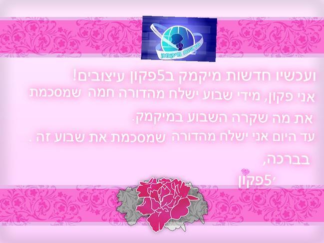 מידי שבוע אשלח מהדורה המסכמת את שבוע זה. עד פרטים בעיצוב למעלה: