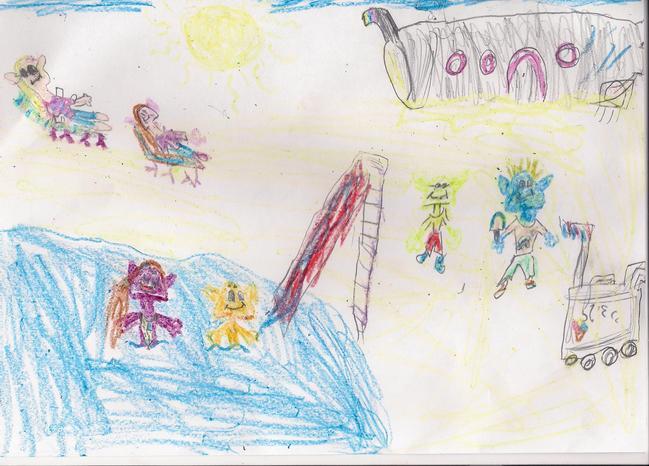 בחוף הים יש הרבה מיקמקים חלק שוחים חלק משתזפים וחלק סתם עומדים ומסתכלים ואחד מהם אוכל ארטיק.